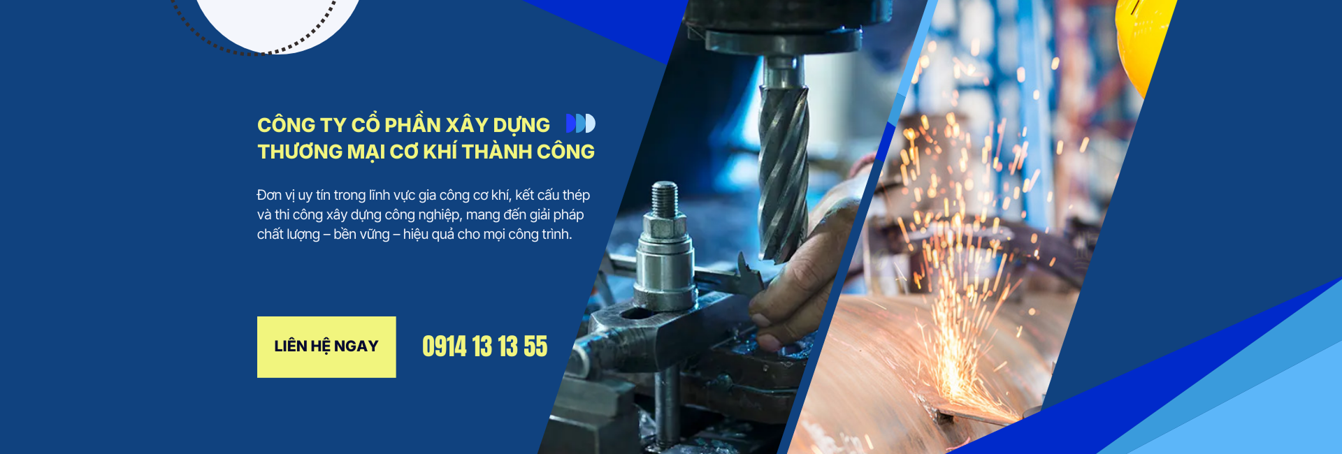 CÔNG TY CỔ PHẦN XÂY DỰNG THƯƠNG MẠI CƠ KHÍ THÀNH CÔNG là đơn vị chuyên hoạt động trong lĩnh vực cơ khí và xây dựng, với thế mạnh trong thiết kế, gia công và thi công nhà thép tiền chế, kết cấu thép, hệ thống bao che và phụ kiện nhà thép. Với đội ngũ kỹ sư giàu kinh nghiệm, hệ thống máy móc hiện đại và quy trình làm việc chuyên nghiệp, chúng tôi cam kết mang đến cho khách hàng những giải pháp xây dựng tối ưu, tiết kiệm chi phí và đảm bảo chất lượng công trình. Cơ Khí Thành Công luôn đặt uy tín, chất lượng và tiến độ lên hàng đầu, không ngừng cải tiến công nghệ và nâng cao dịch vụ nhằm đáp ứng nhu cầu ngày càng cao của khách hàng trong lĩnh vực xây dựng nhà xưởng, nhà kho và công trình công nghiệp trên toàn quốc.